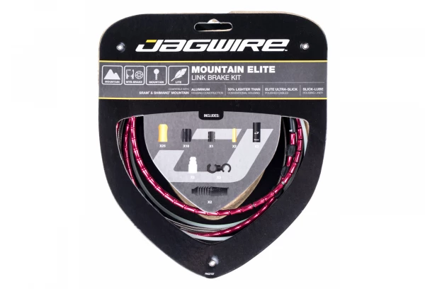 Le nouveau Jagwire Mountain Elite Link rouge empêche toute corrosion grâce à ses liens d’aluminium assemblés les uns dans les autres, le câble est lui-même entièrement protégé par une doublure interne étanche pour une durabilité maximum. Le kit est conçu pour améliorer la performance de votre freinage et apporter une touche de personnalisation à votre vélo.