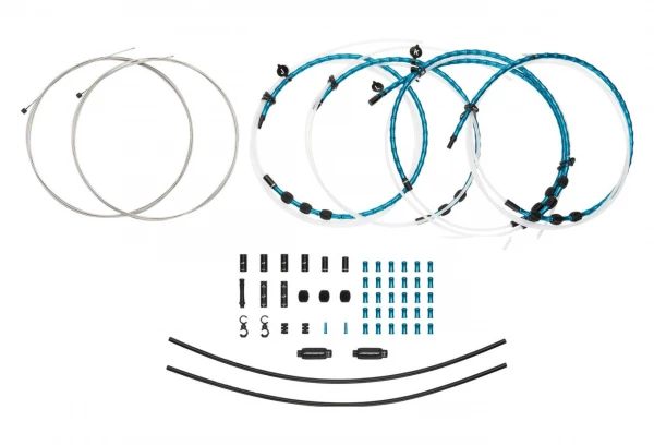 Comprend suffisamment de gaine et d’embouts pour un vélo avec un dérailleur avant et arrière, avec une gaine (non-continue) divisée en plusieurs segments.