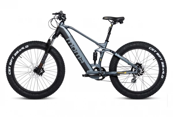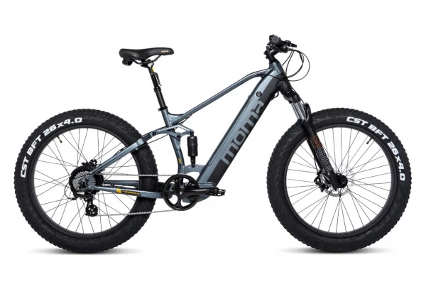 Il est équipé d’un moteur Brushless 250W, d’une batterie intégrée et amovible de 48V 13Ah (624Wh) avec une autonomie de 100/120km*, de roues extras larges 26” x 4.0 (100-559), d’une double suspension.