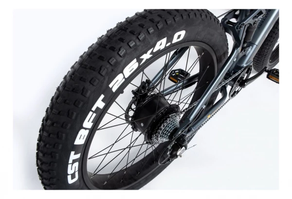 La structure de ce FATBIKE électrique est assez similaire à notre gamme E-MTB, mais sa fourche est plus large dû à la taille de ses roues. Les pneus sont également conçus pour maintenir la stabilité sur un type de terrains ”difficiles.”