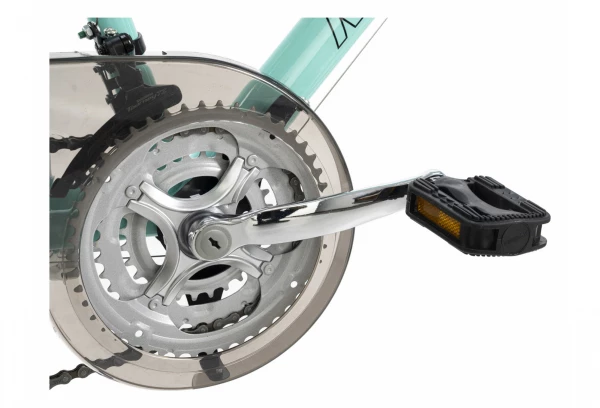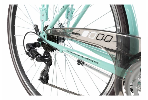 Le VTC 28etquot, VEGAS de KS Cycling va vous accompagner partout, que ce soit en ville ou pour vos balades à la campagne. Avec son cadre turquoise, il a un look particulièrement classe, Le garde-chaIne transparent et le guidon plat complètent le design.