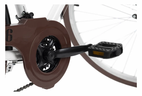 Avec son cadre blanc combiné à des détails élégants, il a un look particulièrement classe. De plus, les pneus, le protège-chaIne, la selle et les poignées sont de la même couleur et complètent le design.
