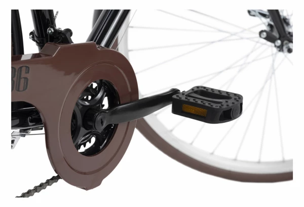 Avec son cadre noir combiné à des détails élégants, il a un look particulièrement classe. De plus, les pneus, le protège-chaIne, la selle et les poignées sont de la même couleur et complètent le design.