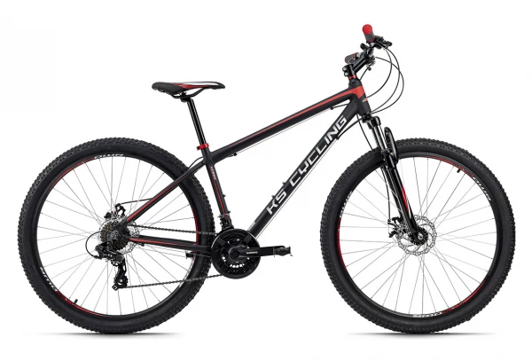 Aucune balade ne sera trop longue, aucune montagne ne sera trop haute: Le VTT semi-rigide XCEED de KS Cycling et son design rouge mate des plus cool vous convaincra également par ses équipements techniques complets!Ce VTT est équipé det#39,un dérailleur SHIMANO 21 vitesses. Le freinage est assuré par des freins à disques mécaniques à let#39,avant et à let#39,arrière. La selle ergonomique a un design parfaitement assorti au look du vélo.Outre le cadre, les jantes, le pedalier, la tige de selle, le guidon ou encore la potence sont en aluminium pour un VTT tout en légèreté.Cadre: semi-rigide aluminiumTaille de cadre: 46 cmCouleur: NoirFourche: suspendue avec tige Ahead 1 1/8etquot,Jeu de direction: AheadPotence: Potence Ahead en aluminiumGuidon: VTT en acierMoyeux: Moyeux avec support de freins à disqueJantes: aluminium double paroiPneus: A crampons 29etquot, x 2,10etquot, (54-559)Vitesses: Dérailleur 21 vitessesDérailleur AR: SHIMANO TourneyDérailleur AV: SHIMANO Tourney 3 vitessesLeviers de vitesses: SHIMANO ST-EF500Pignon: SHIMANO MF-TZ500 7 vitesses (28-14 dents)Pédalier: en aluminium SHIMANO Tourney FC-TY301 (Plateaux 42-34-24 dents)Roulement de pédalier: BSA à cartouchePédales: résine avec cage en acierSelle: Selle VTTTige de selle: aluminium etOslash, 27,2 mmFixation de selle: anneau de serrage à visFreins: À disque mécaniques (avec disque wave etOslash, 160 mm)Leviers de freins: SHIMANO ST-EF51Accessoires: SonnettePoids: environ 14,5 kgNos vélos sont prémontés à 85% (montage de certaines pièces, réglage freins, dérailleur..) et sont garantis deux ans, sauf pièces d’usure.